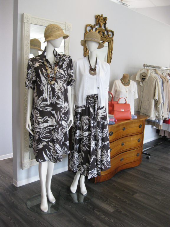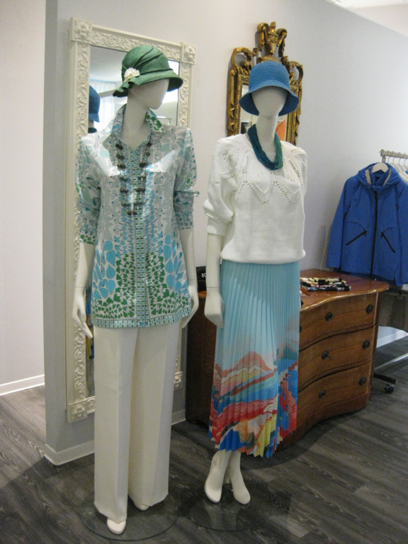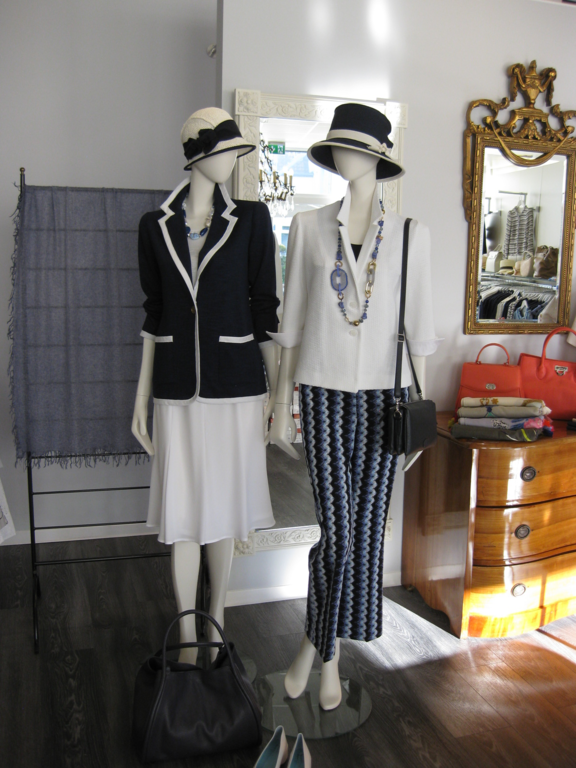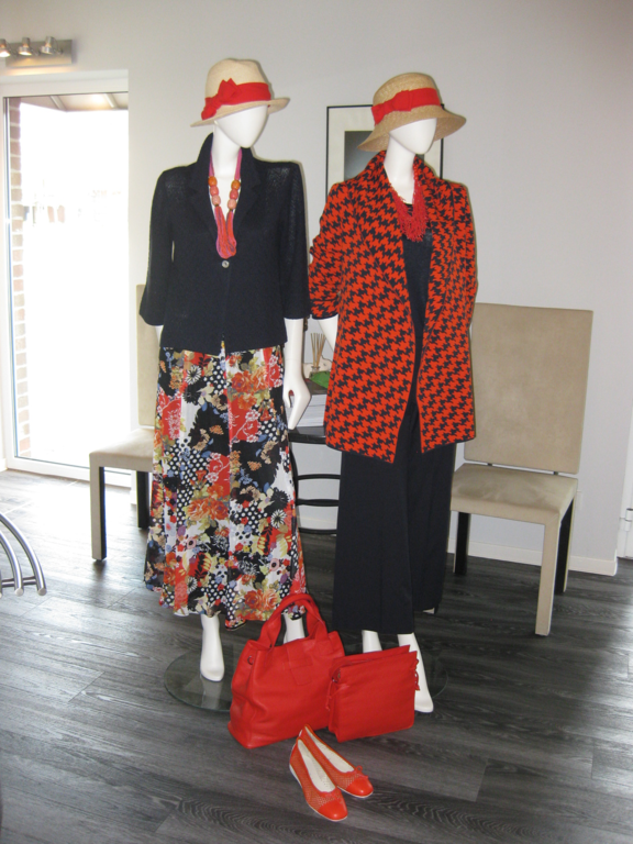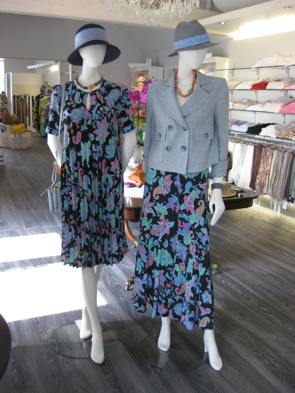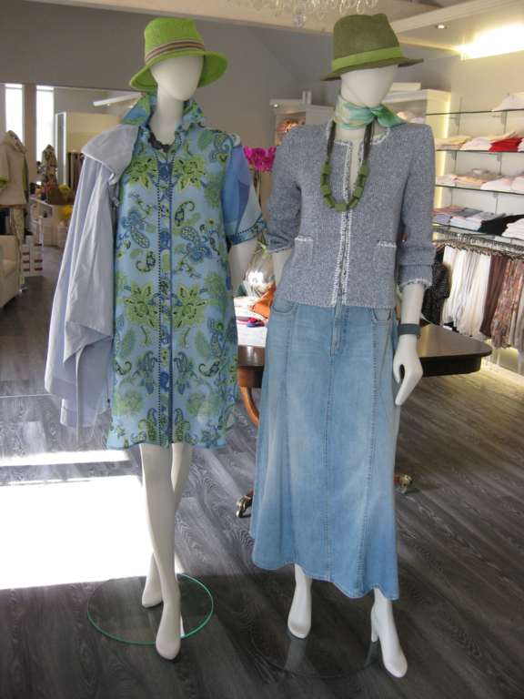 Wir präsentieren in einer ansprechenden Atmosphäre die neuesten Kollektionen namhafter Designer in den Größen 34 bis 48: